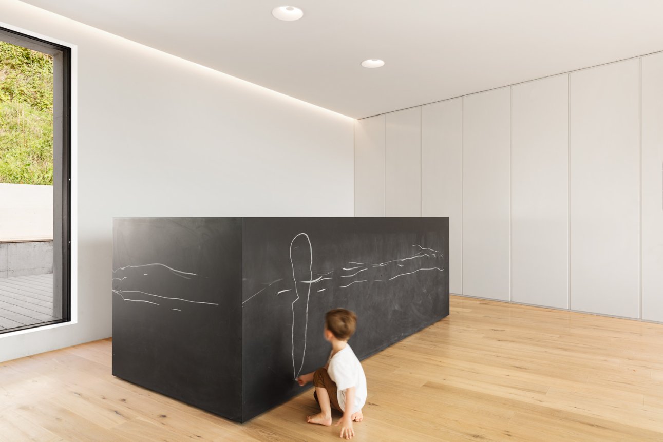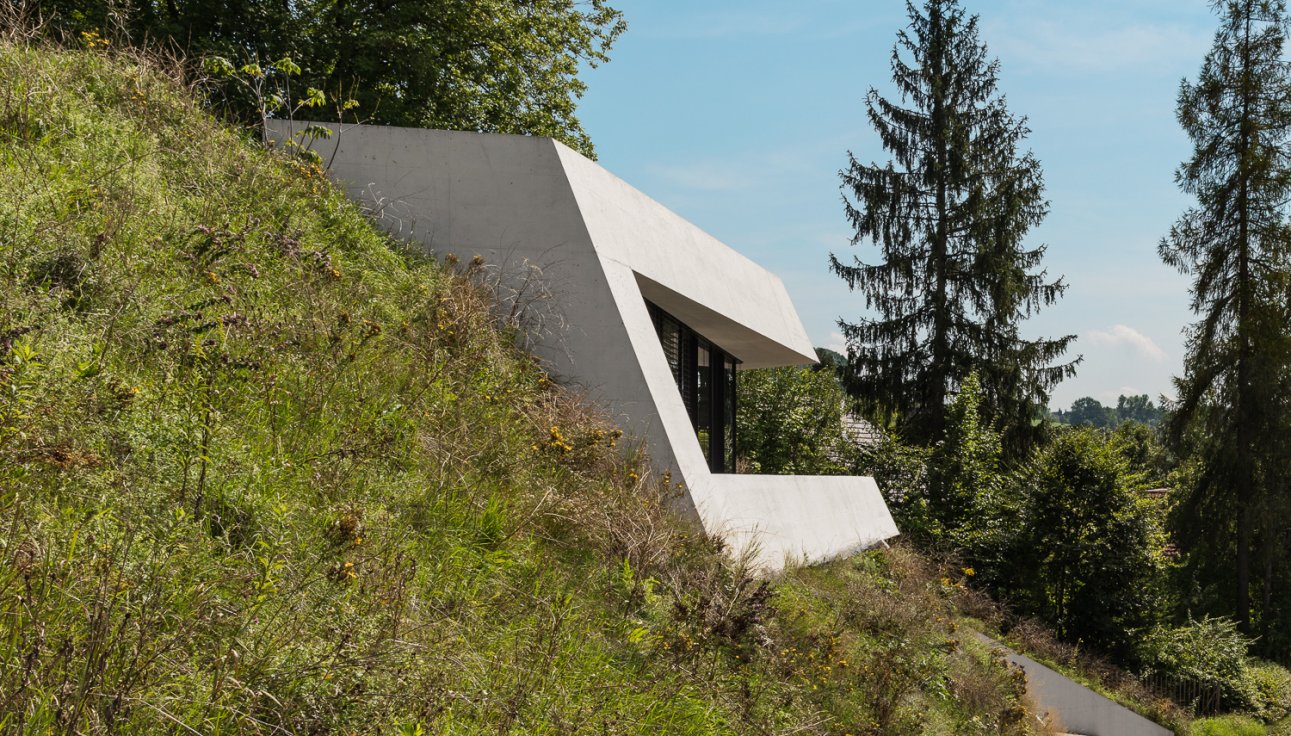 Für eine junge Familie projektiert Dost ein Minergie-P Einfamilienhaus an der prominenten Arova-Kurve in Flurlingen. Topografie, Aussicht, Lärmemission und Erschliessung zeichnen das Gebäude.
