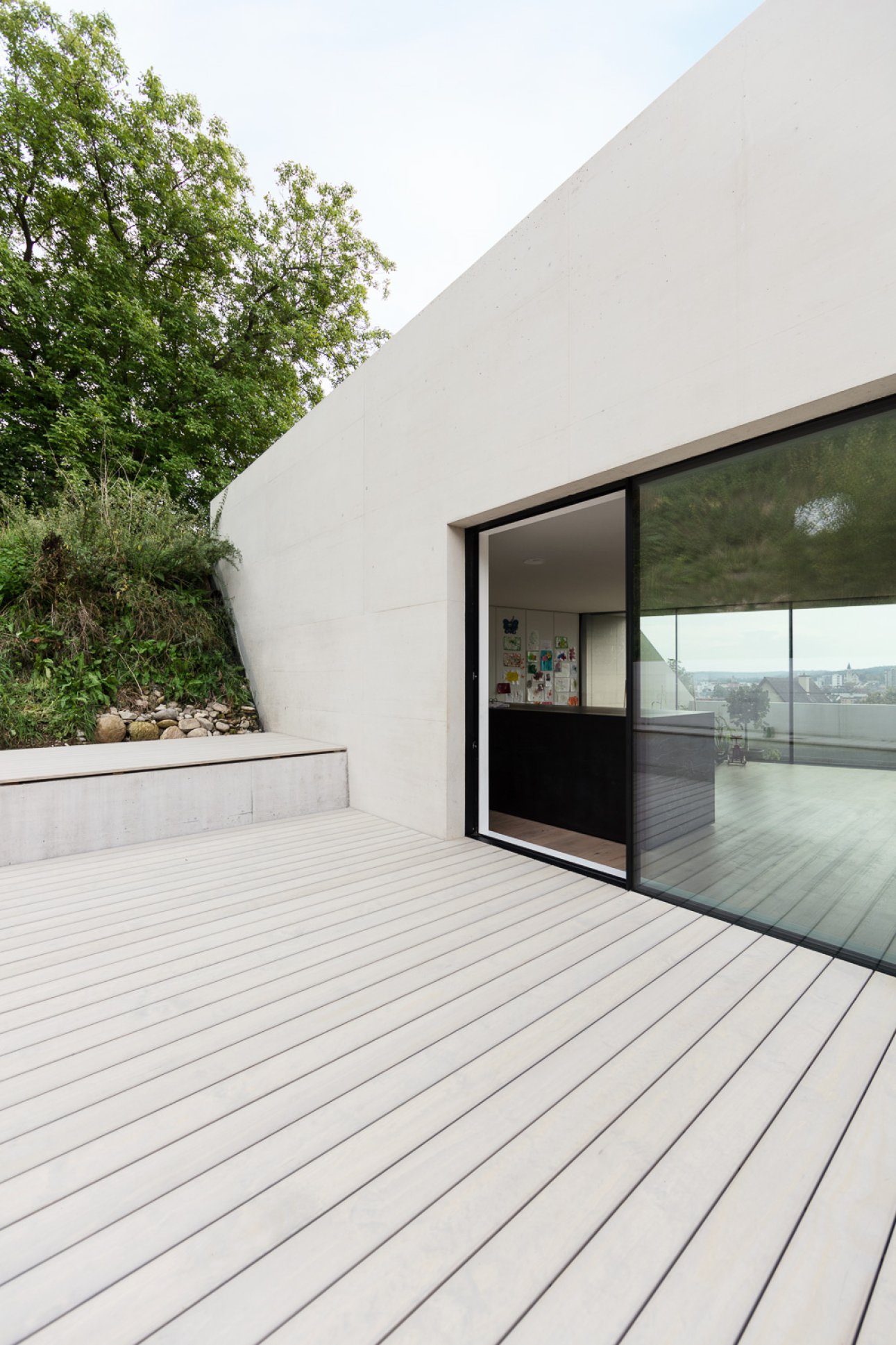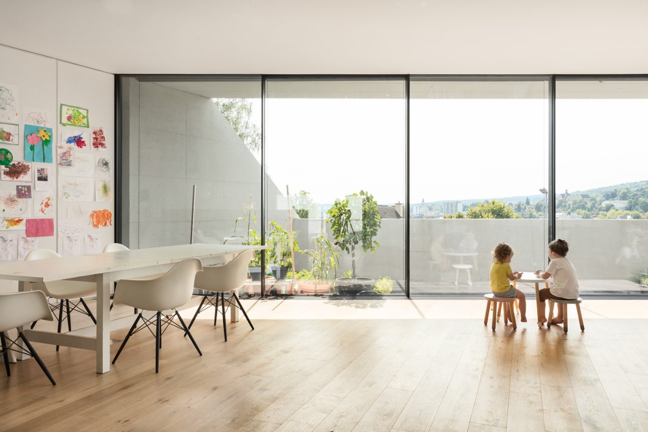 Für eine junge Familie projektiert Dost ein Minergie-P Einfamilienhaus an der prominenten Arova-Kurve in Flurlingen. Topografie, Aussicht, Lärmemission und Erschliessung zeichnen das Gebäude.