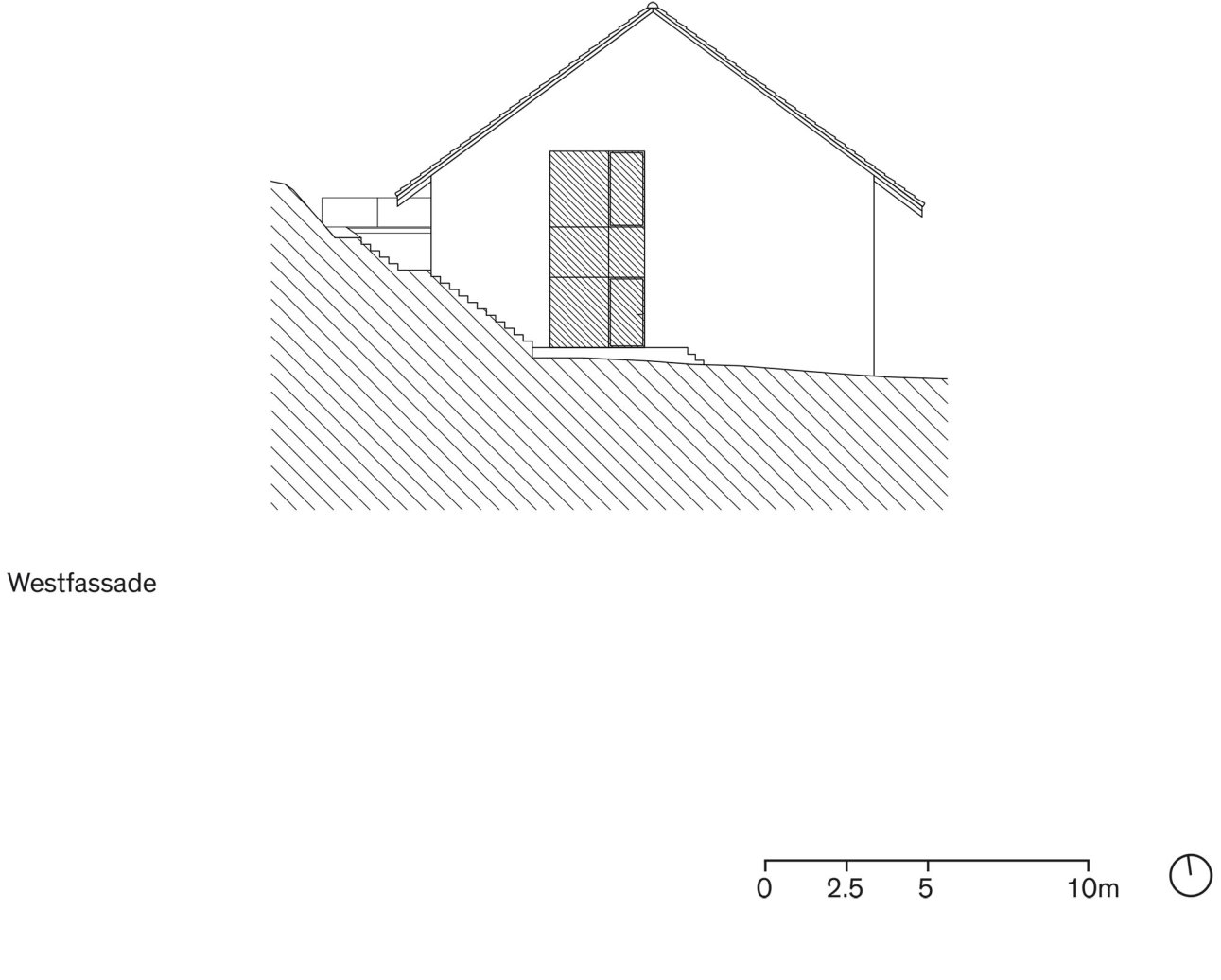Von Aussen erhält das Gebäude durch den Rückbau der Anbauten seine ursprüngliche Ruhe und Prägnanz zurück und ein Vorplatz für Veranstaltungen wird freigespielt. An der Giebelfassade werden die, im Zuge vorhergehender Umbaumassnahmen entstandenen, Fenster geschlossen. Eine präzise neue Fassadenöffnung über zwei Geschosse bildet den neuen Haupteingang, versorgt den Veranstaltungsraum mit Licht, schafft gerichteten Aussenbezug und steht symbolisch für die Entwicklung.