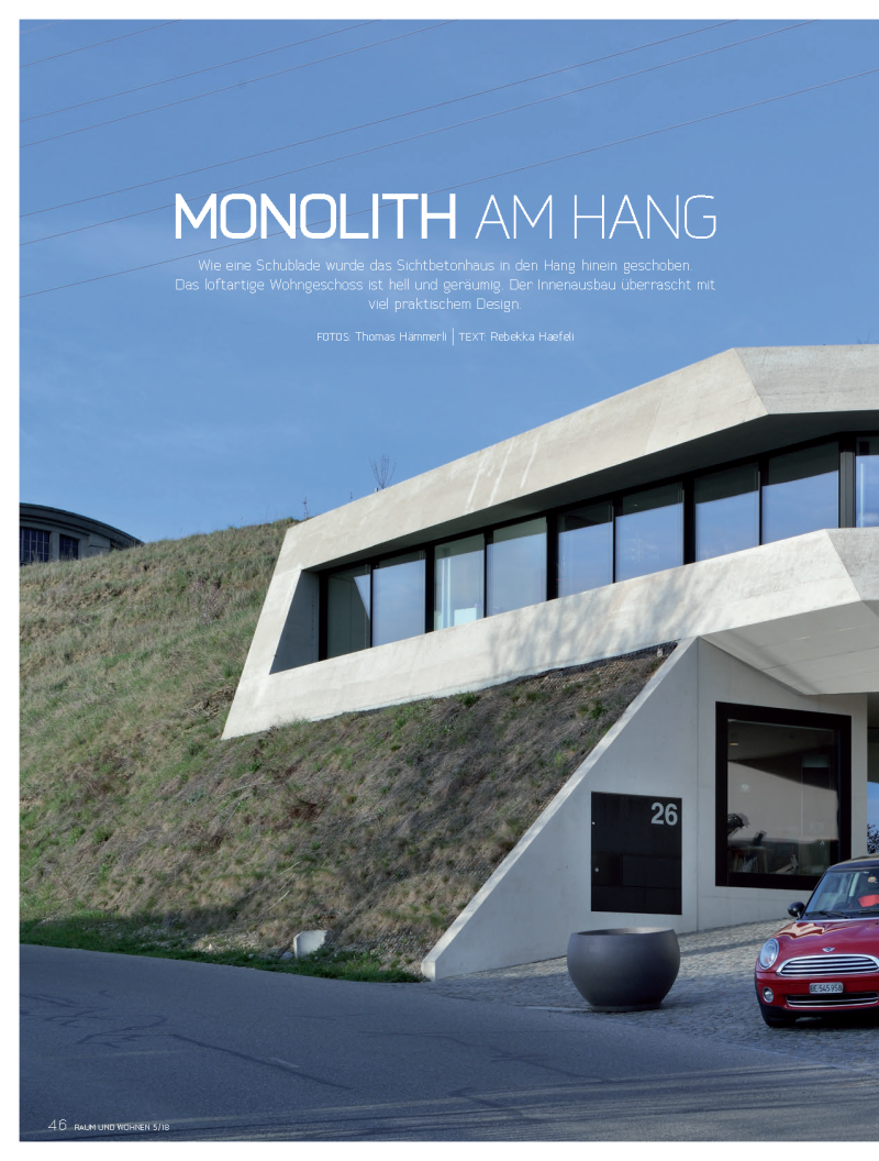 Monolitär Flurlingen in der Architekturzeitschrift «Raum und Wohnen»