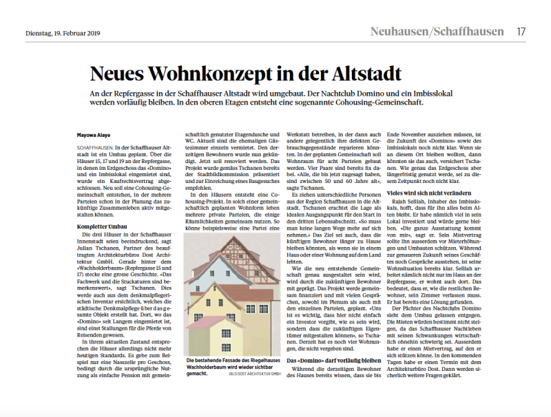 Unser Projekt an der Repfergasse in Schaffhausen wird heute in den Schaffhauser Nachrichten vorgestellt.