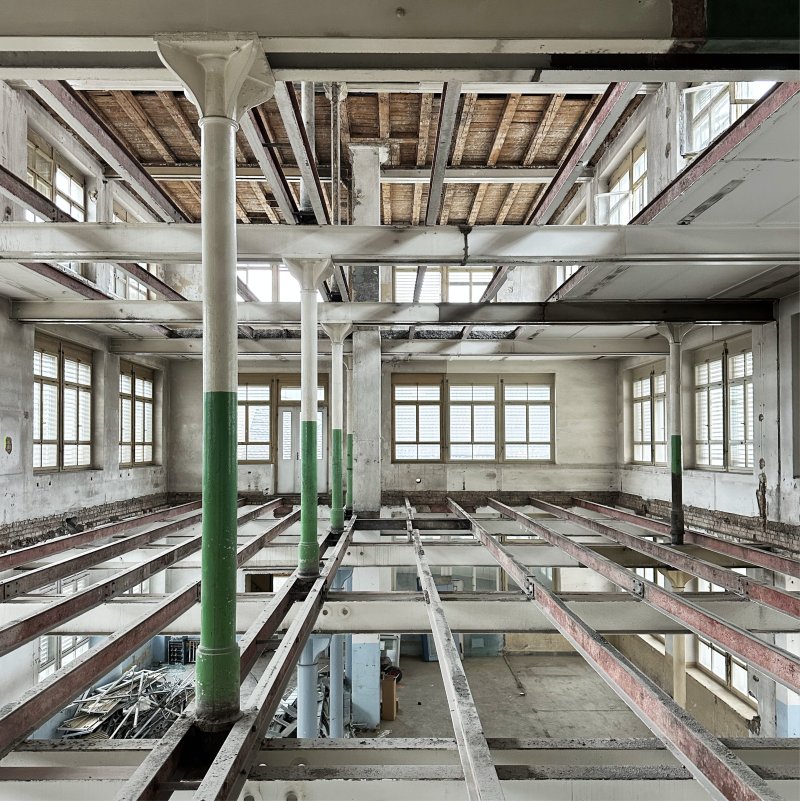 Innerhalb dieses Gerüsts entstehen neue Wohnungen welche die Geschichte des Areals erlebbar weiterschreiben.