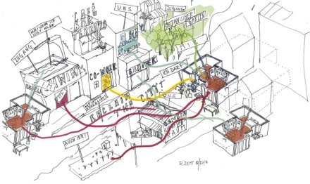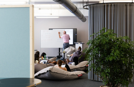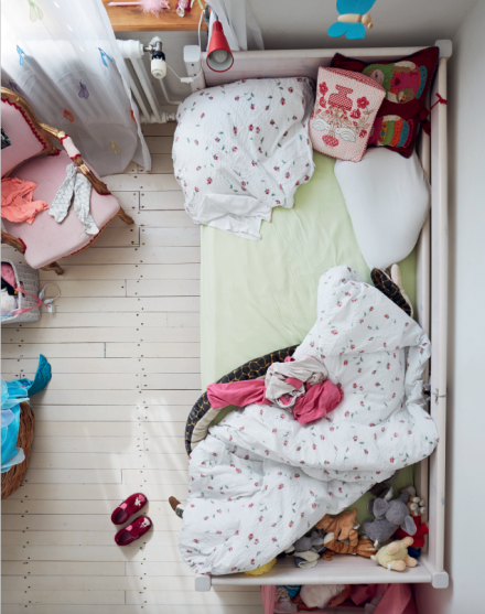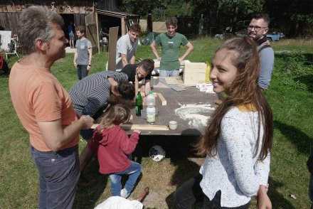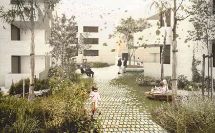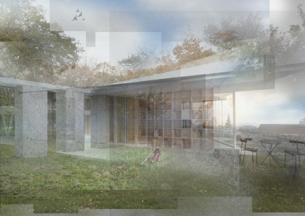 Im Innern wird die polygonale Aussenform durch die Treppe aufgenommen und weitergeführt. Gewünscht war ein offenes, kommunikatives Haus, in dem die Bewohner stets in Beziehung zueinander stehen. Dieses Raumverständnis manifestiert sich in der grossen, skulpturalen Treppe im Innern – dem Herzstück des Hauses. Entlang der Treppe werden künftig Pflanzen emporwachsen; aus ihr entwickeln sich pro Geschoss Einbaumöbel, die in die Räume hineinreichen und die visuelle Verbindung zwischen den Ebenen weiter stärken.