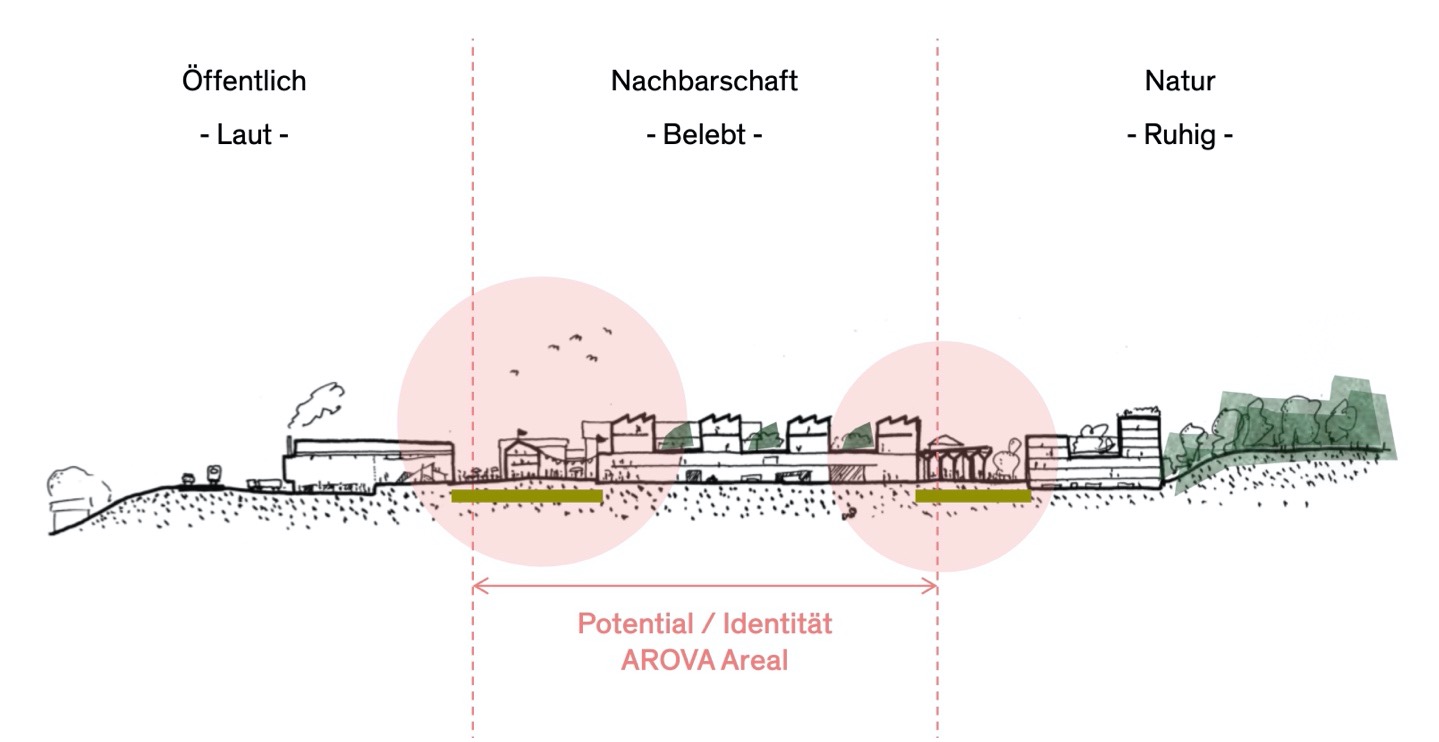 Auf dem Areal sind heute ausschliesslich gewerbliche Nutzungen und Dienstleistungsbetriebe zugelassen und angesiedelt. Die Bedürfnisse und Präferenzen dieser Nachfragersegmente (Traditionelle Industrie, Gewerbe, Handel) sind im teils historischen Gebäudebestand entweder gar nicht oder nur mit einschneidenden Auflagen und enormen Investitionen zu erfüllen. Für den nachhaltigen Erhalt und eine zukunftsfähige Weiterentwicklung des Areals AROVA HALLEN ist daher ein (modernes) Konzept der Nutzungsmischung zu finden.