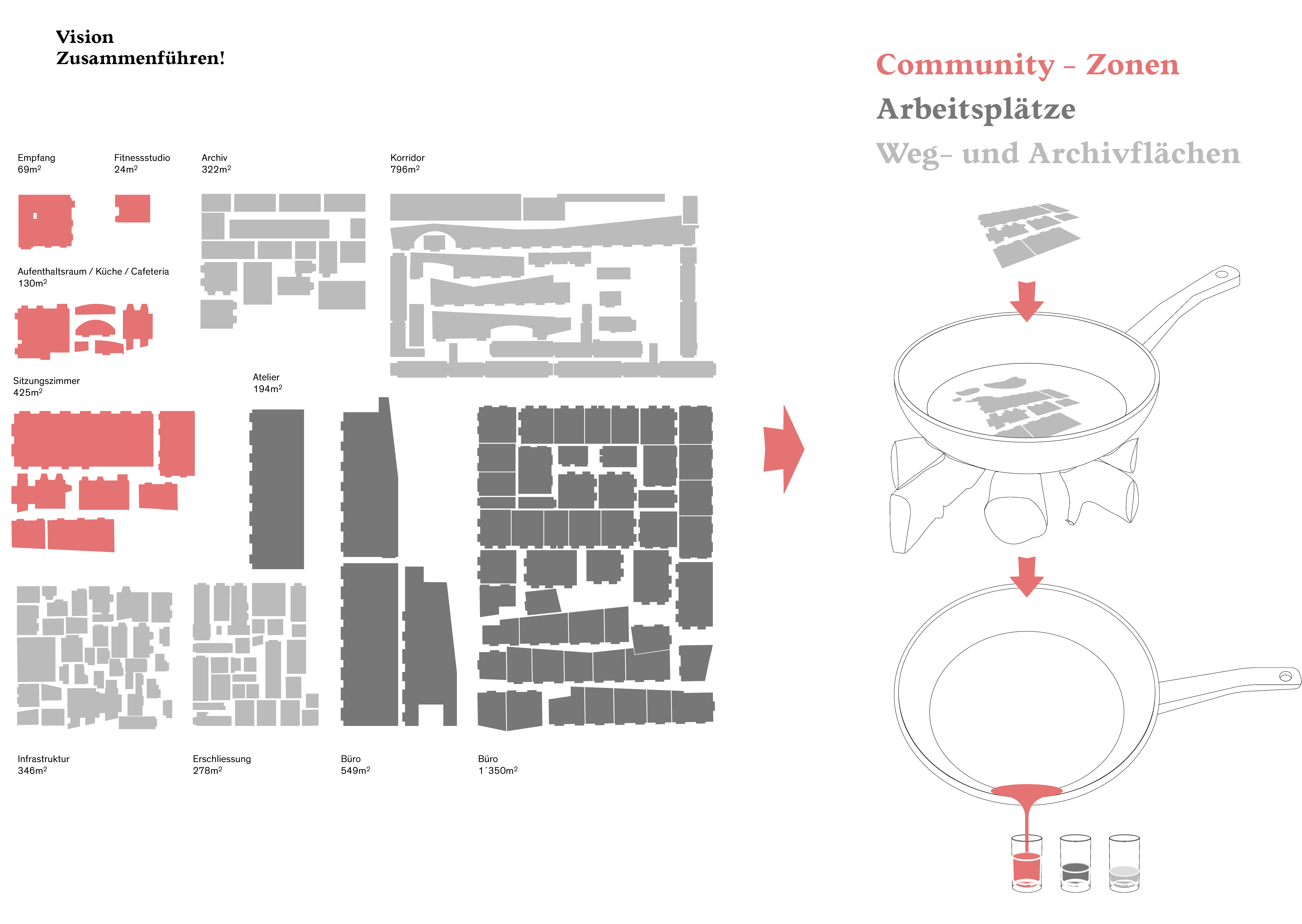 Fliessende Raumstrukturen stärken die Zusammenarbeit. Ein historisches Industrieschloss am Reinfall wird zum Schauplatz von Vision, Mensch, Raum, Technik und Industrie. Eine Neuzonierung der Innenräume hinter der denkmalgeschützen Fassade bricht soziale Hierarchien auf und schafft geschossübergeifende und neue Sichtbeziehungen. So entsteht eine austauschorientierte Arbeitslandschaft durch vielseitige Begegnungsqualitäten und eine interdisziplinäre Nutzbarkeit mit Identität.